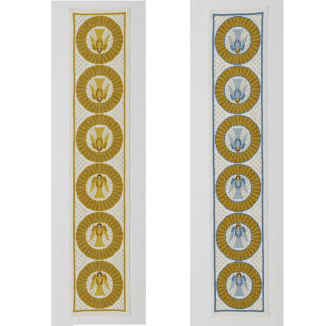 光り輝く光輪に囲まれた天使を描いた優雅なモチーフ。