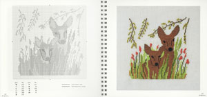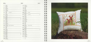 カレンダーには毎月のカレンダーと作品例、次ページには図案と作品が掲載されています。 |