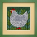 ヴィヴィッドなグリーンをバックに渦巻き模様のキュートな イースターのニワトリ!