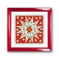 ポインセチアのフォルムの中に緑や赤、黄色い星がちりばめられたとても素敵なデザインです。