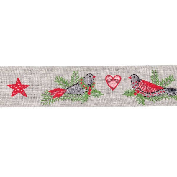 *〔A-35079-02〕 リボンテープ クリスマス&鳥 3cm幅  (1モチーフ=13cm)