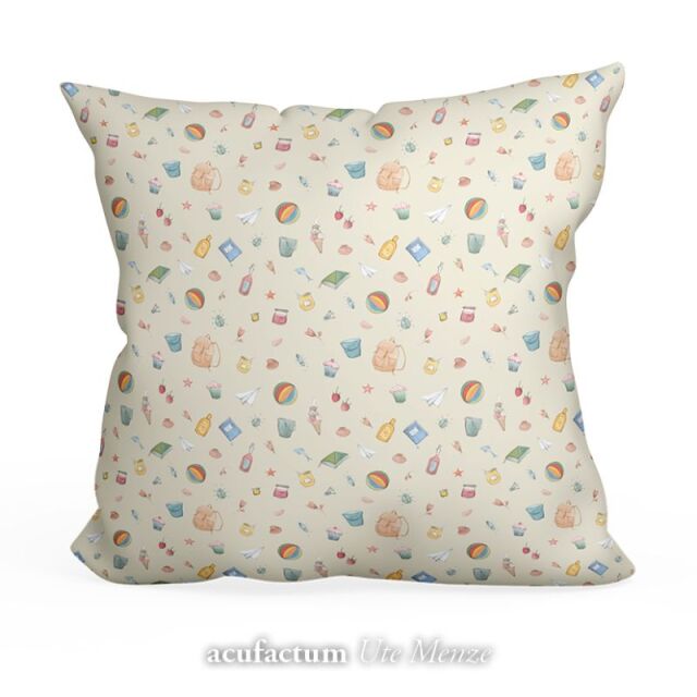 素敵で幸せな夏のためのあらゆる種類のおもちゃや道具が、この上質な生地の上で飛び回っています。