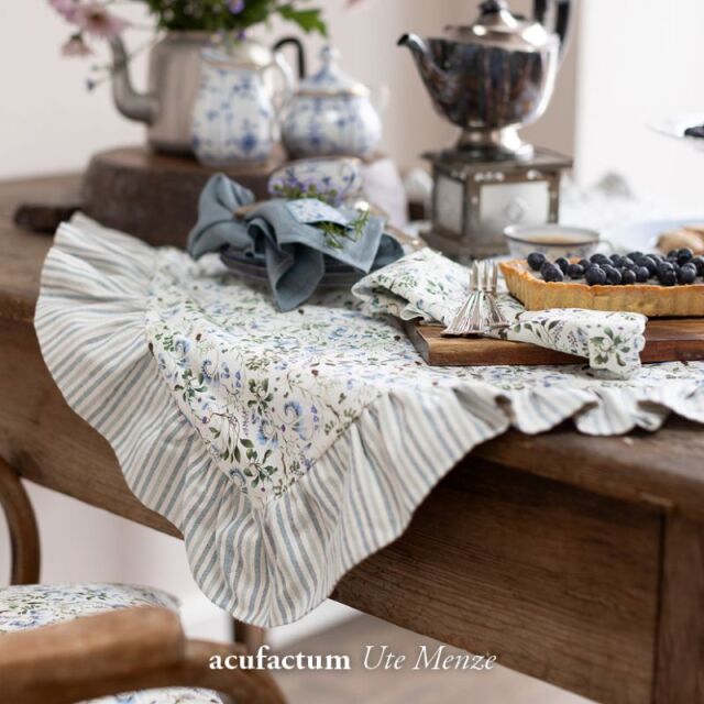 ブルーとグリーンが美しい、淡い色調のコットン生地。