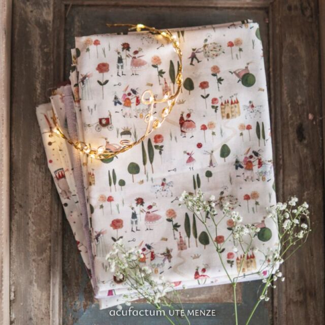 このコットン生地はクラシックなおとぎ話の世界を生き生きと表現しています。