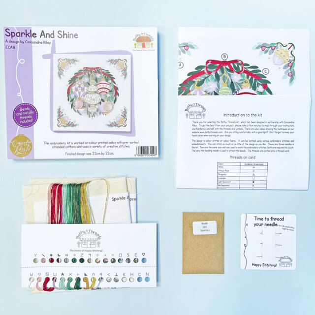 ◆その他付属品:メタリック糸、ビーズ、裏布(キャリコ)、針、ステッチ図、説明書