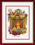 キャンドルやオーナメントなどでクリスマスデコレーションされた暖炉。