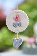 ◆図案&ロゼット / ハートを乗せた車-ブルー