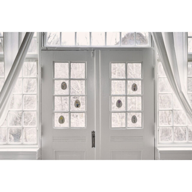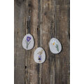 ウサギさんの色に合う水仙とクロッカスを添えた両面刺繍のイースタエッグです。