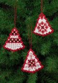 3種類のハーダンガー刺繍のツリーのオーナメント。