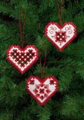 3種類のハーダンガー刺繍のハートのオーナメント。