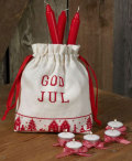 ソリ遊びする子供やスノーマン、モミの木や星がデザインされたバッグ。
