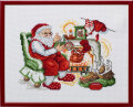 本を読むサンタさんの横で、真っ赤なお鼻のトナカイさんはお昼寝中!
