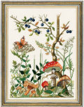 キノコやベリーなど森の恵み、野の花に遊ぶ蝶など