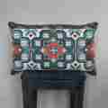 太いウール糸を使用し、古い織物からインスピレーションを受けたデザインで、大きなクロスステッチでクッションを刺繍します。