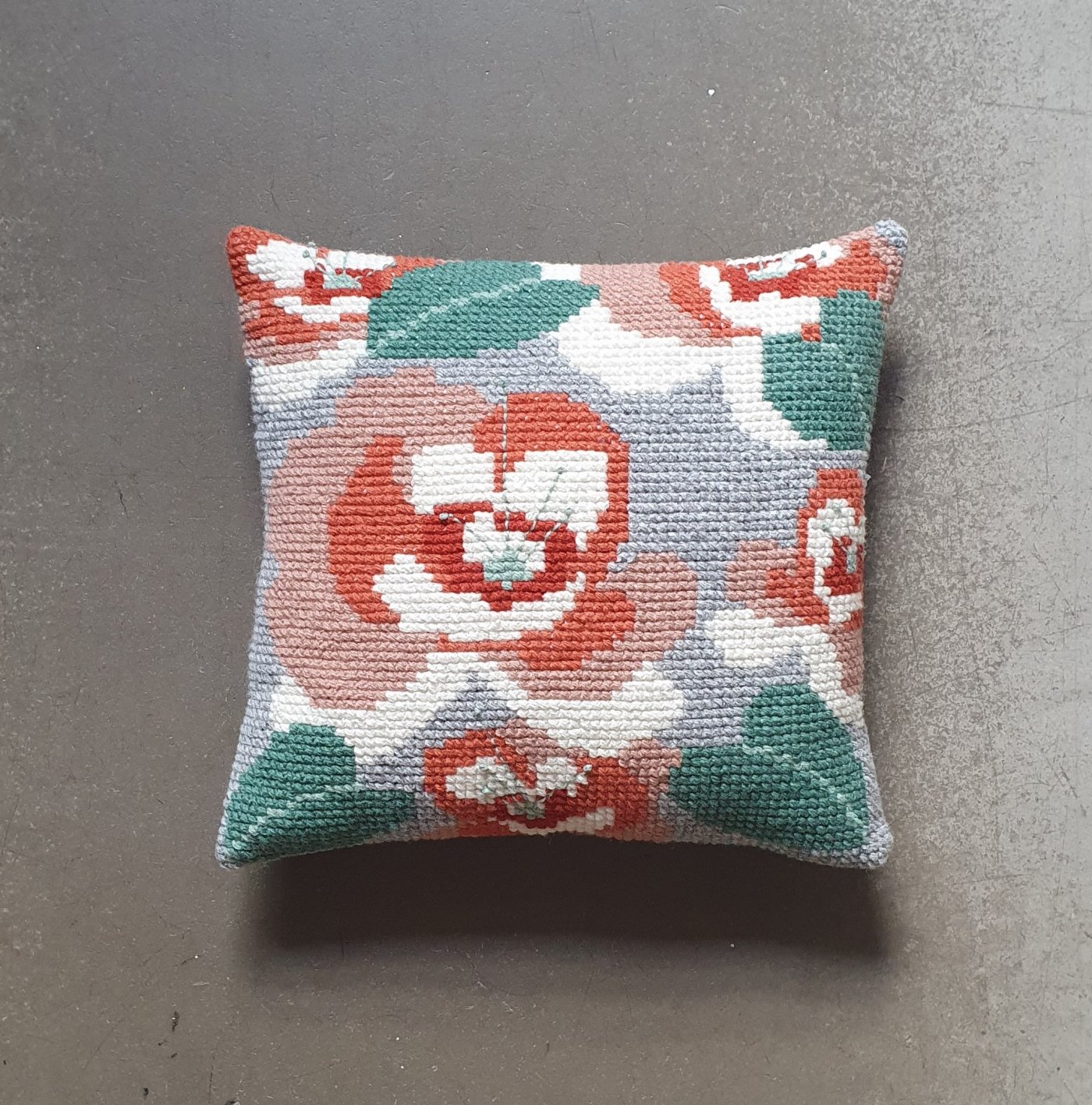 大きい布目のアイーダに2本どりのウール糸で刺繍するのでサクサクと進むはず!