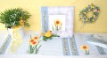 テーブルランナー) 11目リネンテープ 24cm幅x120cm、青色5cm幅