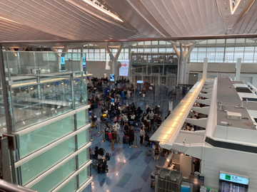 混雑する出発ロービーで搭乗開始を待っている時のことでした。