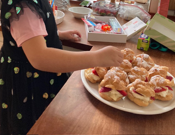 誕生日のシュークリーム、仕上げはMちゃんにお任せ。