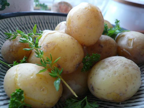 茹でて、庭で摘んだハーブを散らし、粗塩を振るだけで美味しい。