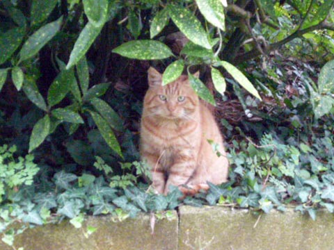 曲がりくねった石畳の小道を散策していたら、黄緑色のカサカサっとした