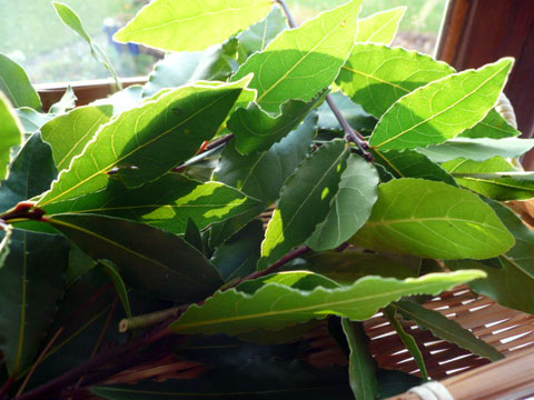 紅葉の中で月桂樹の葉はツヤツヤの緑色。乾燥させてお料理に大活躍です。