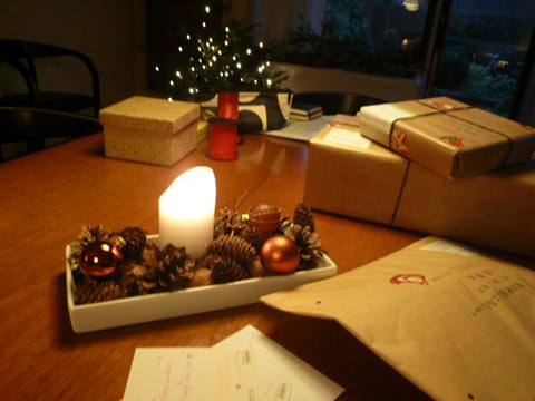 手紙をしたためたり、日本の家族や友人達に送るプレゼントを包んだりして