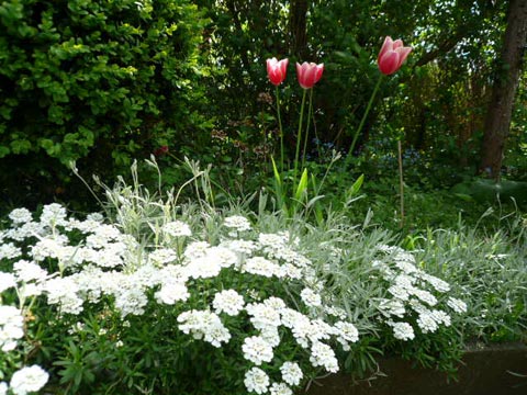 日陰に咲いた遅咲きのチューリップ。